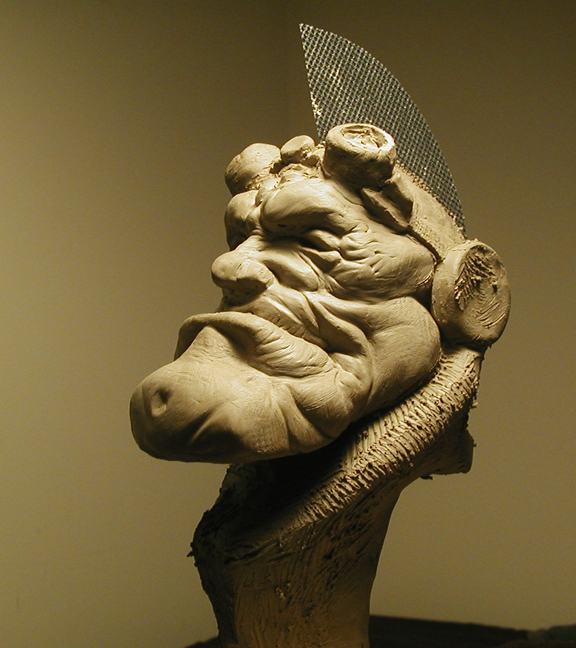 This little guy has been created using water based clay, which can be a little challenging as it hardens over time(even in going to extremes to keep it damp). Starting to add some details to the face, and beginning to rake other areas to be cleaned up down the road. The all important fangs have been created separately, to be added later. More to come! Thanks for stopping by…